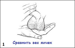 - Подержать мошонку и яички в ладони, чтобы ощутить их вес. Одно яичко может быть немного больше, чем другое, но они должны быть примерно одинаковой массы.